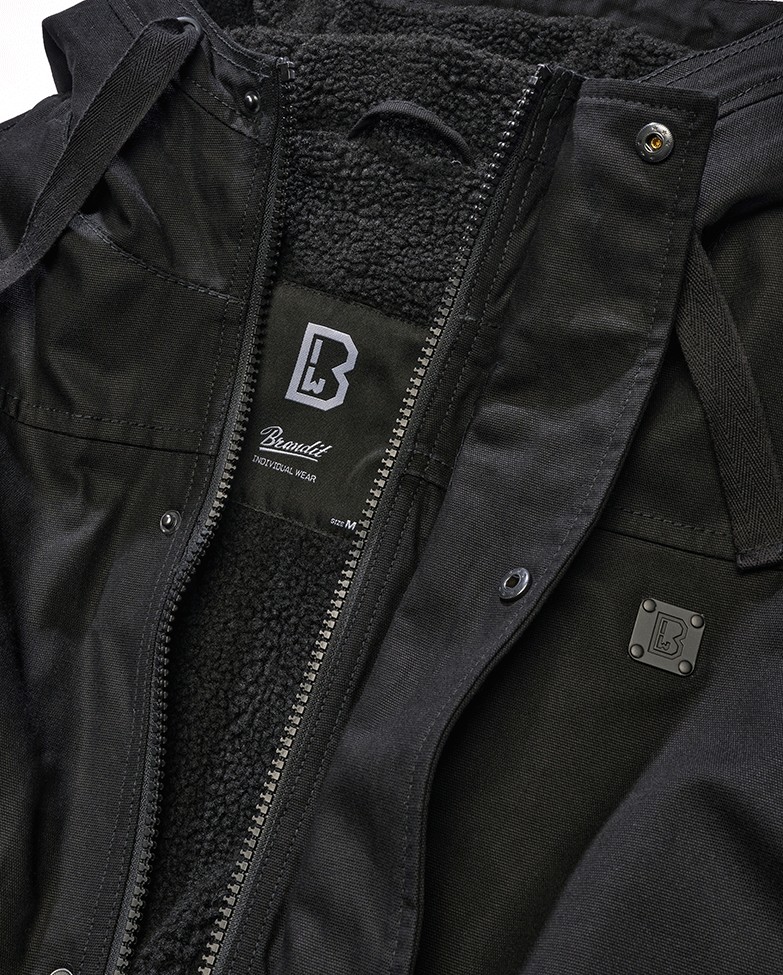 Outer fabric: 100% cotton Faux fur lining: 100% polyester Sleeve lining: 100% polyester Padding: 100% polyester Cuffs: 100% polyester
